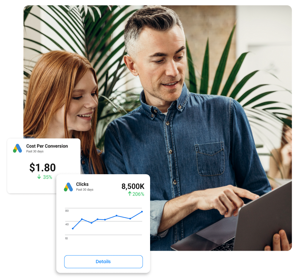 We’ll never just “set it and forget it.” Our PPC team constantly analyzes your campaign data to make informed strategic tweaks to your campaign for ongoing improvement and to achieve your target cost per acquisition.